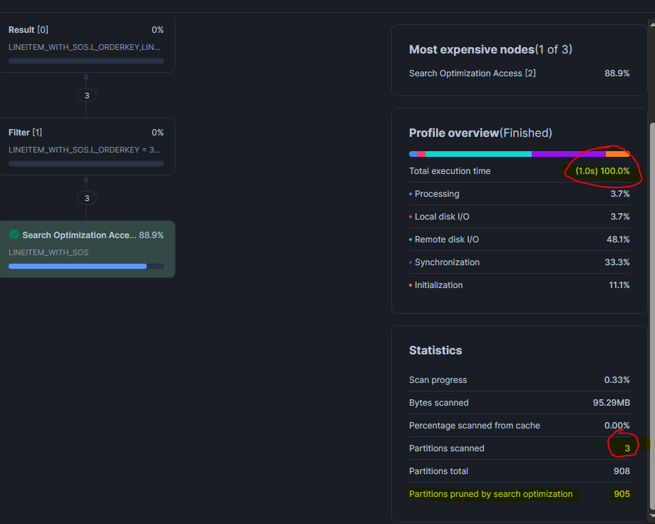 Le SOS est un service qui crée et maintient une structure de données supplémentaire appelée Search Access Path. Pour simplifier tu peux le voir comme un index car il sait exactement dans quelles micro-partitions se trouvent les valeurs d'une colonne.